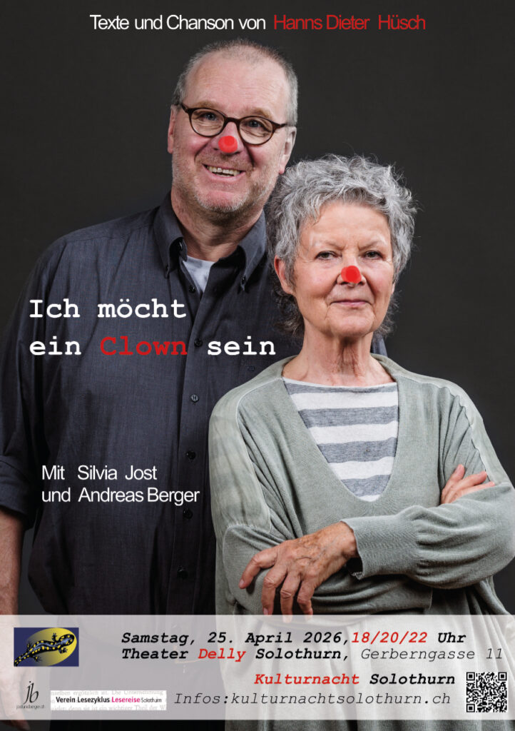 In diesem Programm präsentieren Silvia Jost, die in den Siebzigerjahren mit Hanns Dieter Hüsch auf der Bühne stand, und Andreas Berger eine Auswahl seiner Texte und Chansons aus 50 Jahren, die nichts von ihrer Frische und Aktualität verloren haben.